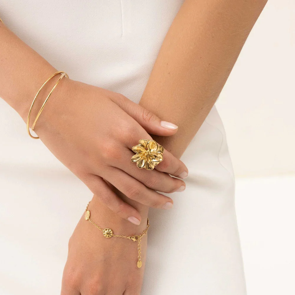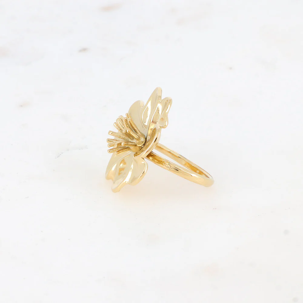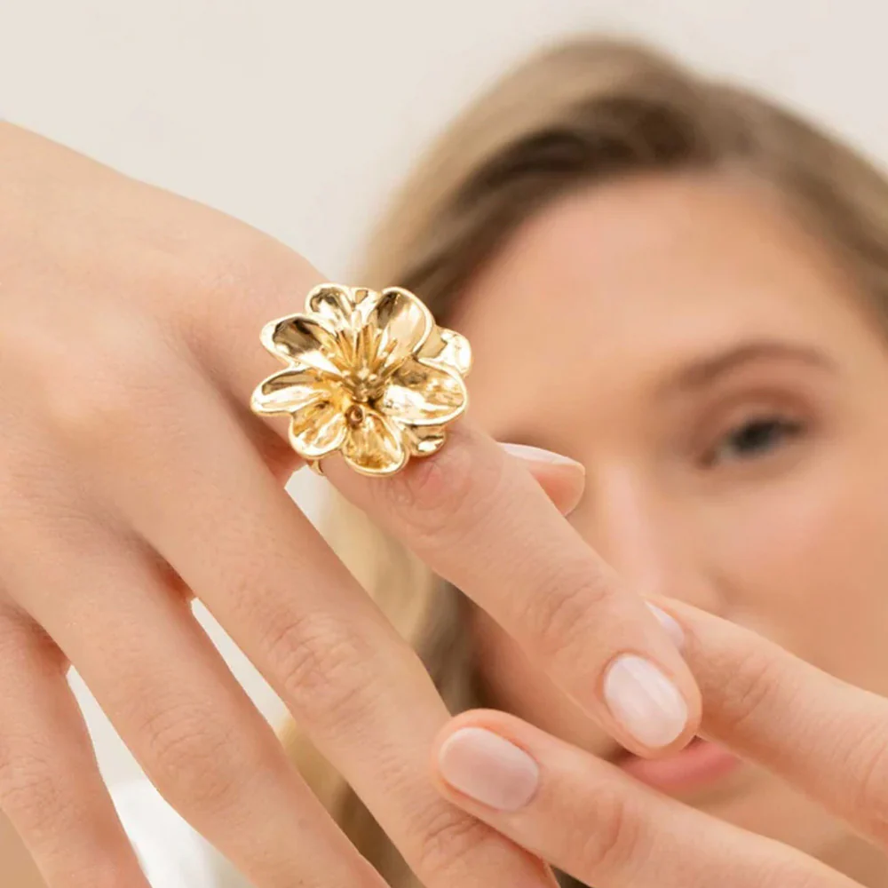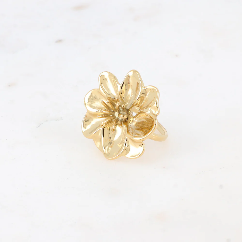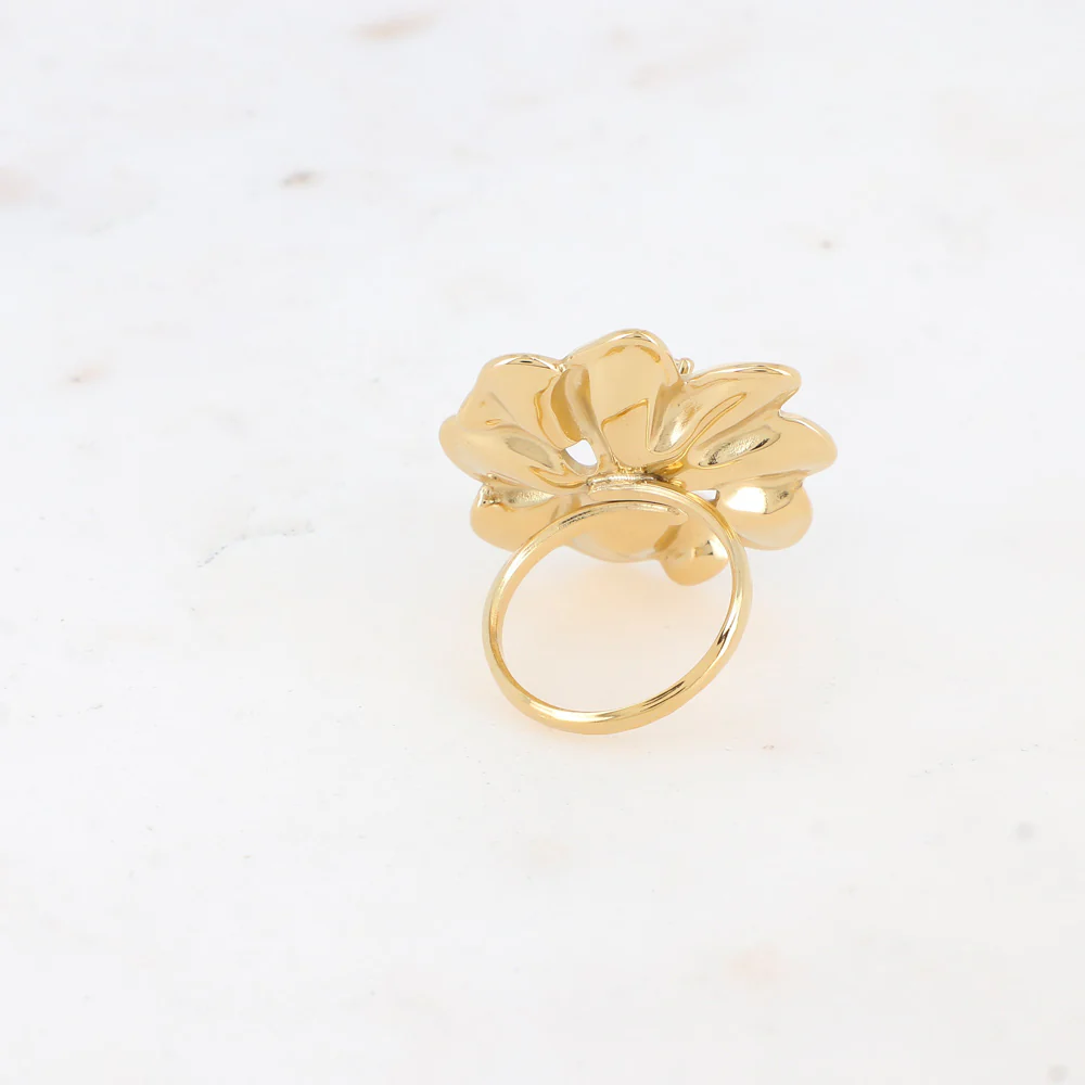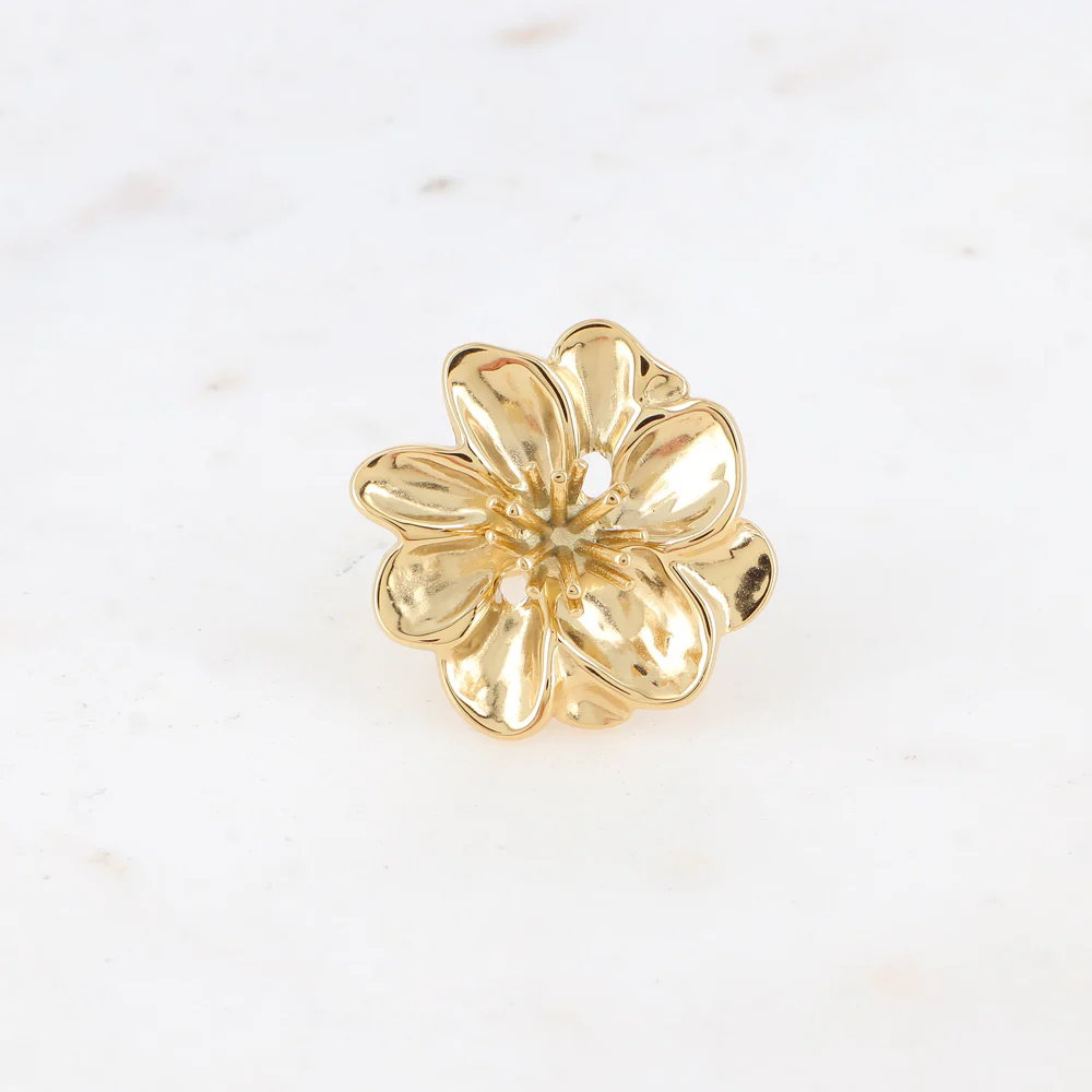 Bague en acier inoxydable composée d’une fleur ressemblant à une aubépine.