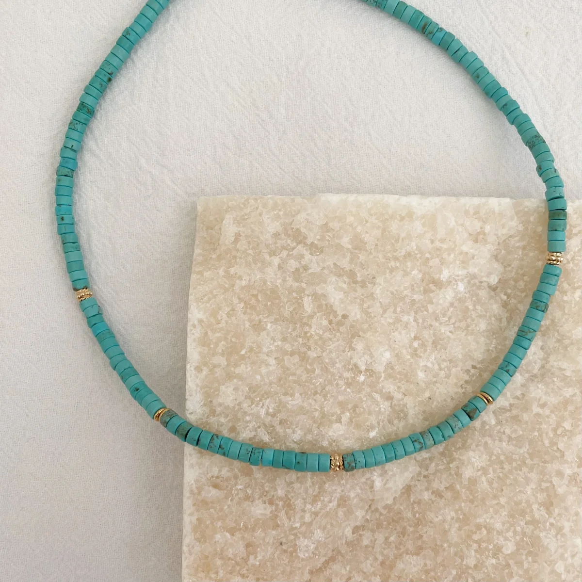 – Pierre semi-précieuse: turquoise. La turquoise apporte des bienfaits relaxants, elle apaise des colères et des tensions.